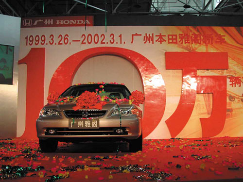 2002年3月1日,廣州本田累計生產的第10萬輛廣州雅閣轎車下線。