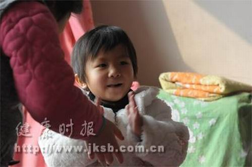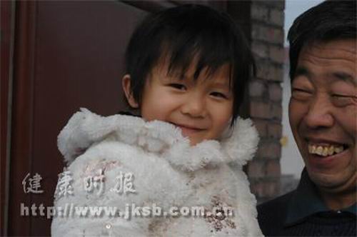 2月5日上午,健康時報記者專程趕到孝義市郊區小杰的家。小杰正在院子里玩耍。她看到跟記者一起來的劉克戰,扭頭就跑,鉆進了姥爺的懷抱。