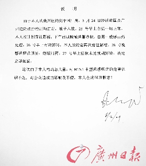 出院在即且不想被媒體打擾的“公眾人物”李某,留下一封信交付給醫(yī)院。昨日,記者從廣州市第八人民醫(yī)院獲取其寫給公眾的“說明”。由于超過三天無癥狀且兩次檢測(cè)均為陰性,他已符合衛(wèi)生部出院標(biāo)準(zhǔn),其在醫(yī)生同意下,打算悄悄離院。