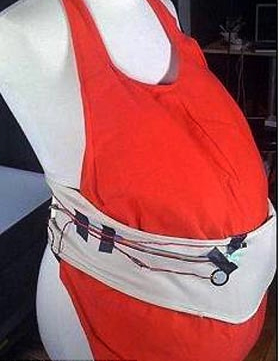 “懷孕腰帶”可以監控胎兒蹬踢母親腹部的頻率,并自動上網更新“胎兒博客”的日記內容。“胎兒博客”日記的內容通常是:“12月17日:我在上午9:15踢了一下母親。”或者是:“12月17日:我在中午11:38又踢了一下母親……”