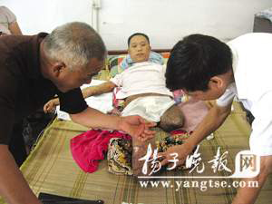 左邊臀部以下、右邊膝蓋以下已被截肢,全身都是燒傷的疤痕,但躺在床上的葛小勇并沒有像記者想象中的那樣頹廢,就在前往他家回訪的趙主任為他換藥讓他感覺疼痛時(shí),他報(bào)以家人的卻是玩笑似的語言:“趙主任別把我當(dāng)是你,我怕疼”。簡(jiǎn)簡(jiǎn)單單的一句話讓屋內(nèi)所有人都相視而笑。