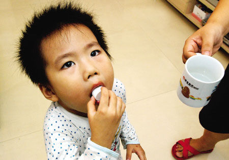 懂事的小雅吃藥的時候很聽話,一口就把藥吞下了