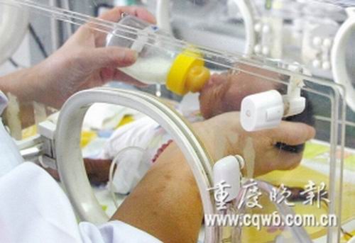 醫生說,入院后的前幾天,強強3次出現呼吸困難,好在都化險為夷。醫生介紹,強強一開始不能像其他孩子一樣正常吃奶,只能通過靜脈給孩子補充營養,隨后,護士們就用最小號的奶嘴給孩子喂奶,從最初的每次0.5毫升、0.8毫升到今天的7、8毫升,強強現在已能自己用嘴吸奶了,腸胃系統已完全適應外來營養。