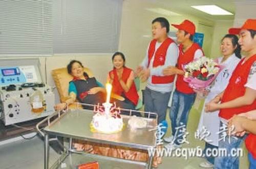 宮女士一邊獻(xiàn)血一邊過(guò)生日