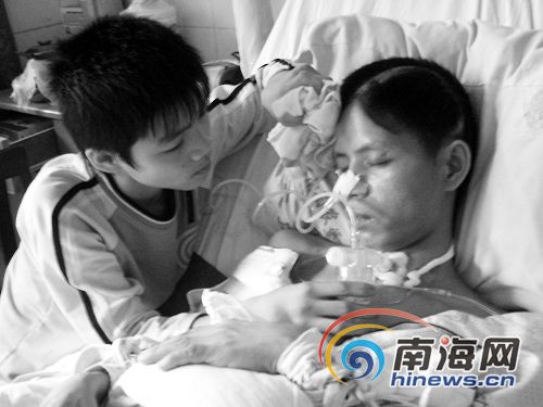 “其實當時醫生也勸過我們放棄,但是只要還有一線生機,我們還是想試一試!痹诟赣H昏迷時,小鋒每天趴在父親的耳邊,和父親說話!拔颐职值哪,他都沒反應,甚至掐他的手,他也沒喊痛,我急了就喊!庇谑,每天同病房的病友總能聽見一位少年在呼喊:“爸爸,爸爸,你醒來吧,小鋒在這里,你睜開眼睛,看看我吧!我以前不聽話,只要你醒來,我以后都聽你的,好好讀書。”直到喉嚨嘶啞了,小鋒的眼睛也哭腫了,也沒見父親醒來。一天又一天,小鋒一次又一次失望了。