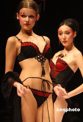 中國國際時裝周2009春夏系列發布在北京開幕。11月5日,中國國際時裝周(2009春夏系列發布)在北京隆重開幕,來自國內外的40多個知名品牌和時裝設計師以及150余位設計新人、時尚之星將在為期一周的時間里在北京飯店和D-PARK北京時尚設計廣場舉辦時裝發布、專項大賽、時尚論壇、新聞發布、專題講座、展覽展示等近70項活動。本屆時裝周發布的品牌和設計師主要來自國內和港、臺地區,另有2家韓國品牌和設計師參與。時裝周期間將舉辦45場動態發布活動,其中,有36場時裝、成衣、化妝造型設計2009春夏系列趨勢發布。圖為開幕式上的內衣創新元素設計大賽。