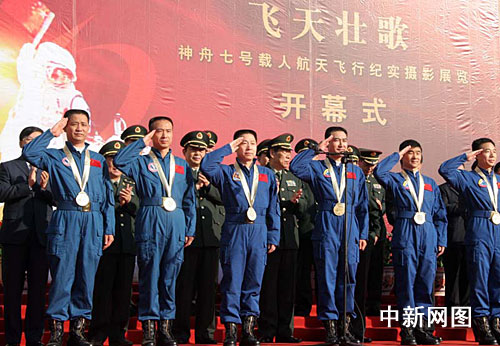 11月9日,以“再現(xiàn)‘神七’飛天全過程 記錄漫步太空經(jīng)典時(shí)刻”為主題的《飛天壯歌——神舟七號載人航天飛行紀(jì)實(shí)攝影展覽》,九日在北京中國人民革命軍事博物館開幕。
