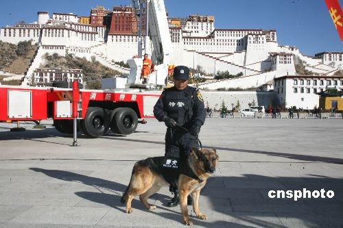 圖為消防特警在布宮前展示快速反應(yīng)能力。中新社發(fā) 賈長(zhǎng)飛 攝
