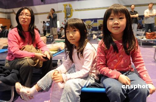 洛杉磯縣鉆石吧市被迫緊急撤離的華裔居民正在庇護所內打撲克牌。中新社發 張煒 攝