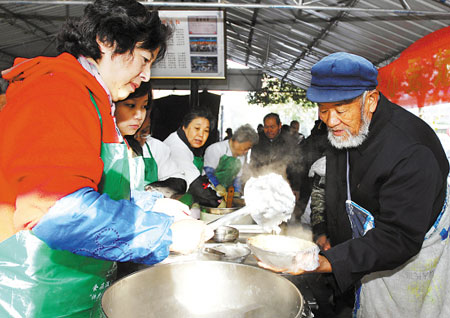 “不是的,施粥與金融危機沒有關系。我們施粥不是從今年開始的,從四年前就開始了。”朱老伯當場就否定了。