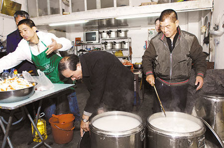 從安徽來溫州7年的錢光宇,在溫州開了一家理發店,當了一個小老板,他的生意曾經很紅火,沒想到妻子卷款離去失蹤至今半年,只能關門。說起吃粥,他苦笑說,前兩年,他用話訓店里的雇員:不好好干,今后只能到紅日亭去吃粥。沒想到來這里吃粥的竟然會是自己。不過,在離開溫州到別的地方去闖業之前,他來吃這碗粥,可以說是“吃粥明志”。