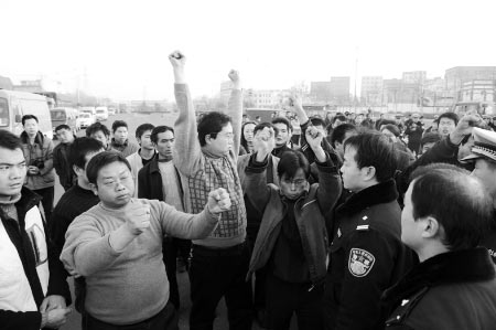 在拉開雙方后,面包車一方幾次欲上前踢打對方,被民警強行拉開。這時,突然有一個穿灰色秋衣、軍綠色褲子的男子,大喊“民警打人了”。民警要讓其到派出所接受調查,該男子掙脫不去。