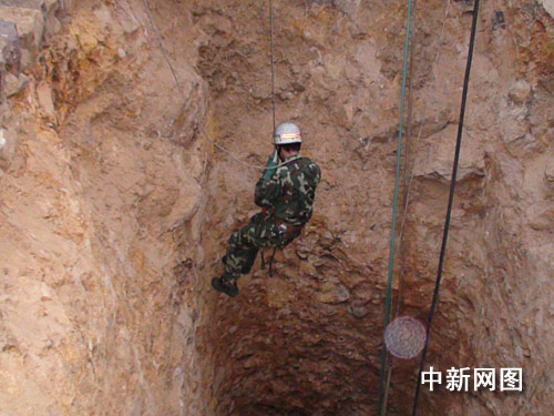 中新網(wǎng)登封1月16日電(記者 朱曉娟 李青娜)2009年1月15日下午16時(shí)28分,河南登封市君召鄉(xiāng)楊溝村一土坡上,四名工人在36米深的井底作業(yè)時(shí),不幸井壁塌方,三人被困機(jī)井中,一人被活埋,情況萬(wàn)分危機(jī),消防官兵冒著零下6度的氣溫,經(jīng)過將近6個(gè)小時(shí)的努力,終將傷者救出。