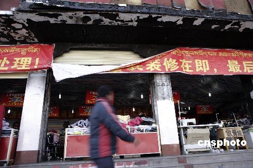 圖:拉薩商業(yè)街被毀商店殘跡仍存