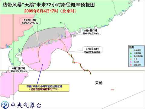 中央氣象臺2009年8月4日18時發布臺風橙色警報: