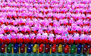 今年國慶廣場背景翻花表演中,有近900名學生來自北京四中。在這些演出主力軍中,還穿插著23名替補隊員。他們將為信號盲區傳遞信號,同時頂替臨時缺席的學生。據了解,每個替補隊員要負責所轄區域內的100人的情況。事實上,這些被稱作替補隊員的學生必須熟悉轄區內每個隊員的翻花動作,承擔著“精英隊員”的任務。