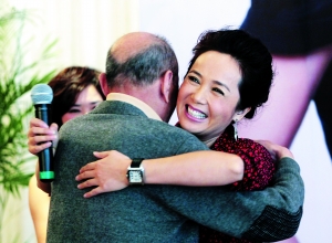 蔣雯麗本月雙喜臨門,剛憑借《立春》獲得金雞影后,其導(dǎo)演處女作《我們天上見》又在韓國釜山電影節(jié)上榮膺“最受觀眾喜愛電影大獎(jiǎng)”。雙獎(jiǎng)在手的蔣雯麗昨日偕《我們天上見》的主演朱旭等在京慶功,可惜慶功宴上丈夫顧長(zhǎng)衛(wèi)姍姍來遲,活動(dòng)已經(jīng)結(jié)束了才出現(xiàn),連話都沒來得及說上一句。