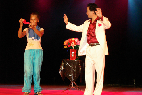 演出從活潑、歡快的空竹表演開始。藝術(shù)小組小演員們嫻熟地抖動(dòng)、拋起空竹的動(dòng)作,使現(xiàn)場不時(shí)爆發(fā)出熱烈的掌聲和歡呼聲。魔術(shù)演員敏捷的變幻手法則讓學(xué)生們睜大了好奇的眼睛。接下來的鉆桶、轉(zhuǎn)盤子節(jié)目,小演員們以風(fēng)趣幽默的表演和頂上、手上技巧表現(xiàn)出熱鬧的生活場景,引來學(xué)生們陣陣歡笑。柔術(shù)則以柔美的肢體語言和行云流水般的輕盈舞姿,獲得觀眾不停的贊嘆聲。壓軸的川劇變臉、吐火表演又讓觀眾領(lǐng)略了中國傳統(tǒng)戲曲藝術(shù)的獨(dú)特魅力。