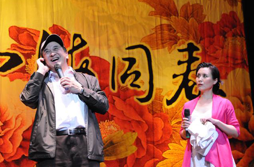 中新網(wǎng)2月25日電 據(jù)阿根廷《新大陸周刊》報道,2月24日晚,“文化中國•四海同春”南美洲藝術(shù)團在阿根廷首都布宜諾斯艾利斯舉行了兩場氣勢恢弘的演出,受到旅居阿根廷華人華僑的熱烈歡迎。“文化中國•四海同春”南美洲藝術(shù)團團長馬儒沛、中國駐阿根廷大使曾鋼及全體使館官員、旅阿華人華僑、中資企業(yè)、留學生代表6000多人觀看了演出。圖為黃宏和段小潔合演小品《早點回家》。