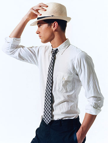 一、襯衫領帶黑白配?否定!除非今天是你最好朋友的婚禮大喜日子,否則穿著白色襯衫黑領帶就太過于僵硬了。相反的,選擇一件方格印花的襯衫或者領帶,會有更好的效果。如果將袖子高高的挽起來,則更有種玩世不恭的瀟灑和自然。當然,如果你足夠自信,那么黑色的褲子搭配一頂小禮帽,將會讓你完全的精彩出眾。
