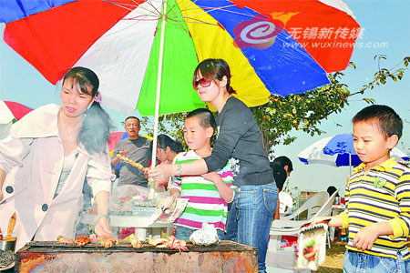 10月12日,在無錫濱湖區一個“農家樂”旅游點,來這里休閑的人們與孩子一起燒烤。近幾年來,我市依托資源優勢,大力發展生態觀光旅游業,推出“農家樂”等一些品牌景點和項目,吸引了眾多游客和城區市民度假休閑,既豐富了旅游內容,又增加了當地農民收入。