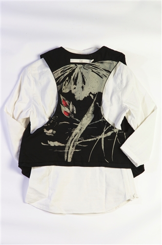 這款背心,背面的水墨畫讓你的背影有了耐人尋味的“看點”。 (梅竹 夏露攝影)