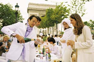 一年一度的香榭麗舍大街上的白色宴會甚具特色 新華社供圖