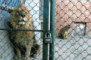 一個月前,動物園的工作人員將4歲多的公獅胖子換到這個獸舍代替奧肥。或許因為想念奧肥,同同對這個新來的“第三者”十分逃避。胖子體形大,讓尚未和它熟識的同同害怕不已。而同樣未接觸過老虎的胖子,也對同同心生恐懼。在最初的幾天,它們各自躲在自己的獸舍里發(fā)出嘶叫,不敢越雷池一步。放在一起后,它們還曾經(jīng)互相抓撓對方,直到最近它們倆才開始熟悉。