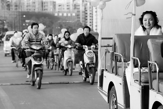 昨天,浙江大學(xué)校網(wǎng)CC98的校園信息分論壇里有個帖子非常火爆,點(diǎn)擊過萬,成了校園的熱門話題。發(fā)帖人ID是cjmaggie,說是上周五浙大藥學(xué)院一博士生舉行校園婚禮,載新郎新娘的婚車不是寶馬、奔馳,而是浙大紫金港校區(qū)的觀光車,其余的車子均是自行車和電瓶車,婚禮車隊(duì)在紫金港校區(qū)逛了一圈。這樣的婚禮樸素得讓人羨慕,這個帖子掛上去沒多久,就成了熱帖,大家紛紛表示祝福。