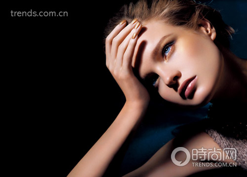 即便是將金色彩妝推上神壇的Peter Phillips,也沒有打算讓金色唱獨角戲,Chanel的四色眼影從金黃到棕褐色、從香檳到灰色,并不都只是金色,但都是皆屬于秋天的和諧金色調,比起純金色的震撼,這些過渡型的金色更適合亞洲人,尤其在眼妝方面。