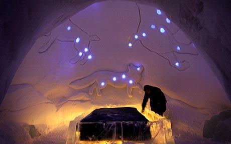 置身這個冰晶酒店里沒有你想象的那么寒冷。因為在客房內(nèi)還提供睡袋、羊毛大衣及令人舒適的睡眠設(shè)備等。當(dāng)客人們睡醒時,酒店將提供一杯熱呼呼的漿果汁,以幫助客人迅速溫?zé)嵘眢w。酒店還特別為御寒能力弱的旅客提供兩個溫暖的地下室選擇。