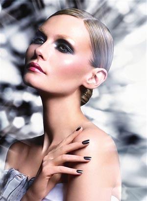 以最個(gè)性的方式展現(xiàn)低調(diào)的搖滾風(fēng)潮。來自英倫大地的年輕模特CiaraNugent帶著一貫的酷感與個(gè)性,擔(dān)當(dāng)了此款?yuàn)y容的演繹模特,濃重?zé)熝蹔y,溫暖色和著晶瑩閃亮的雙頰配合微卷齊劉海、耳際隨意的小碎發(fā),加上今季的流行圣品——叮叮當(dāng)當(dāng)?shù)拈L串金屬耳環(huán)和BCBG的藕灰色晶銅亮片裝,剎那間一位不拘一格,應(yīng)合玩樂風(fēng)潮的英倫搖滾個(gè)性女郎站在你的面前!