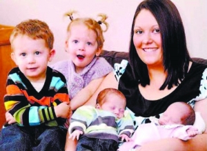 英國(guó)樸次茅斯市22歲母親卡莉·奧布賴(lài)恩和28歲男友約翰·格朗特在一起生活時(shí),為了避孕她幾乎每天都堅(jiān)持服用避孕藥?闪羁ɡ蜃鰤(mèng)也沒(méi)想到的是,避孕藥非但對(duì)她毫無(wú)效果,并且她還在兩年時(shí)間中接連生下了兩組可愛(ài)的雙胞胎!