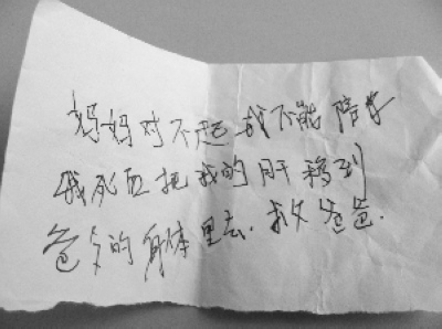 令崔女士怎么也沒有想到的是,1月24日中午12點半左右,當(dāng)她從醫(yī)院回到家,卻發(fā)現(xiàn)自家大門被反鎖了,“我只好從后院翻墻進去,看到女兒躺在床上一動不動,就像死了,旁邊有兩個安眠藥空瓶和一張遺書,上面寫著‘媽媽對不起,我不能陪你,我死后把我的肝移到爸爸的身體里去,救爸爸。’”崔女士頓時覺得天旋地轉(zhuǎn),“這兩瓶安眠藥有200粒啊!女兒是23日傍晚五點多在醫(yī)院吃過晚飯回家的,到我發(fā)現(xiàn)的時候,有十多個小時了。”