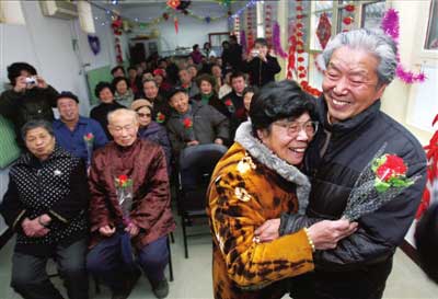 “親愛的,感謝你!”昨天下午,東城區(qū)史家社區(qū)居委會內(nèi),近20對年近古稀的老夫妻聚在一起,其中4對已過金婚。他們學(xué)習(xí)牽手、擁抱、送玫瑰,“惡補(bǔ)”情人節(jié)知識。相濡以沫的老夫妻們,第一次嘗試開口向?qū)Ψ酱舐曊f愛,雙方都不好意思地扭過頭,現(xiàn)場一片掌聲。