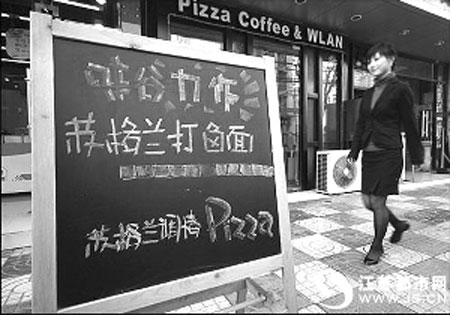 偶然在成賢街一家西餐廳門口看到,木制廣告牌上寫著醒目的“蘇格蘭打鹵面、蘇格蘭調情pizza”。餐廳老板稱,“蘇格蘭打鹵面”是年后新推出的餐品,78元一份,選材多為進口原料,總有一樣和蘇格蘭有關。至于鹵子要不要錢,這事老板保密,他拍胸脯保證,這面鹵不咸。
