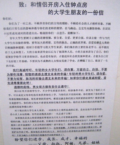致:和情侶開房入住鐘點房的大學(xué)生朋友的一封信