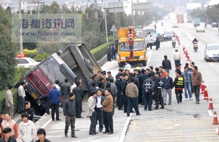 “太慘了……”一名目擊者向記者描述,盡管事情過去了一兩個小時,但他還是心有余悸。他說,事發時正是附近嶺腳中學的放學時間,這輛滿載沙子的貨車從國道飛速駛來,先是與一輛客車側面擦了一下,接著車子就失控了,繼續往路邊奔去。一名依姆騎著三輪車載著一車孩子沒能避開,眼睜睜被卷入車輪當中。車上一個十來歲的女孩當場身亡,騎車依姆雙腳被當場軋斷,而另一名女孩摔在地上動彈不得。但直到這時,車子還是沒能剎住,徑直沖向路邊,直到卡死在排水溝里,而三輪車就被運沙車連推帶卷一直沒能離開車底。