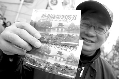 杭州旅游消費券的使用有效期為3個月,從3月1日開始至5月31日截止,用完后還可參加總獎項為100萬元的每月一次抽獎。大獎獎品從原先的一輛轎車升級為兩輛轎車,其他獎品還有雙人杭州四日豪華游、手機、MP4、真絲圍巾等。(王珮 錢朱建 王楠)