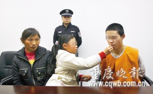 因?yàn)榕c人結(jié)伙搶劫,昨日上午10時50分,15歲少年王言在渝中區(qū)法院少年法庭受審。王言11歲的妹妹從100多公里外的老家趕到法院,給哥哥送來兩顆糖。