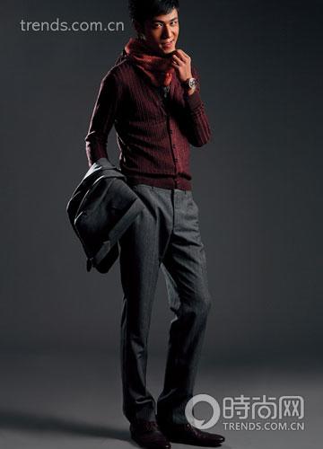 針織開衫又回歸了,自稱紳士的Chuck 當然不會拒絕它的誘惑,搭配悶騷的彩色暗條紋西服套裝散發成熟魅力,唯一不能戒掉的就是亮色絲巾和Chuck 式壞笑。