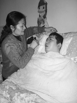 吳磊的昏迷狀況一直持續(xù)到現(xiàn)在,昨天,當(dāng)《生活常州》來到孟湘芳家中時(shí),吳磊仍躺在床上,除了眼睛會(huì)睜開,頭會(huì)轉(zhuǎn)動(dòng)外,吳磊的手腳依然僵硬萎縮,其實(shí)仍然是一個(gè)無意識(shí)無語(yǔ)言的植物人。