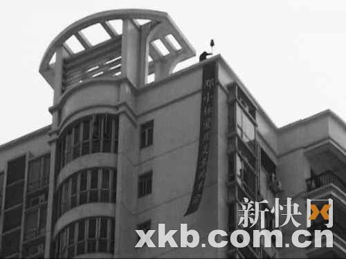 掛出紅色求愛條幅,坐在護欄邊……昨日上午9時30分,一名年輕男子爬上荔灣區逢源路某小區30樓樓頂,用一種危險的方式向一名女子示愛,一個小時后被警方勸下。