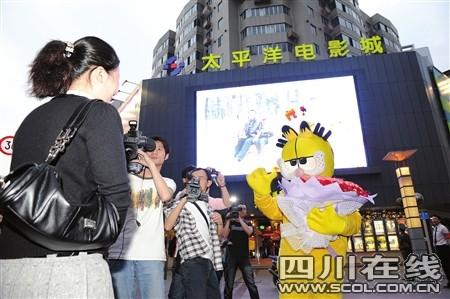 昨晚7點(diǎn),應(yīng)男友的邀請,鄭小姐來到成都春熙路商圈的青年路太平洋影城準(zhǔn)備和男友一起看電影。剛走到影城門口,鄭小姐突然發(fā)現(xiàn):影城門口的大屏幕上,居然正在播放由自己和男友平時照片所組成的短片。沒等鄭小姐回過神來,身穿加菲貓造型服裝的男友周先生已捧著大束玫瑰走上前來,單膝跪地:“嫁給我吧。”