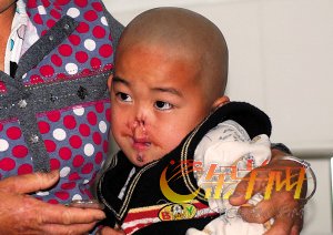 “小孩子現(xiàn)在大了,常聽別人議論,也已經(jīng)明白自己的傷是怎么來的,”小祖爸爸說,孩子雖然面部有缺損,但十分懂事,每次做手術(shù)都不哭不鬧,相當(dāng)配合。(張小磊 郭梅美 劉文勇 李巖)