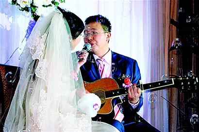 “愛,是一條彎彎的河流,需要相互攙扶還要經受波折……”伴隨著鋼琴曲,新郎一邊朗誦著愛情告白,一邊上前迎接新娘。昨(29)日,一對新人自編自導自演的音樂劇婚禮,別開生面。