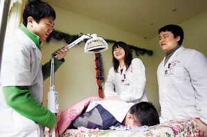 去年12月,劉瑞和周陽回到重慶,開始四處尋找合適的鋪面,“我們遇到很多好心人,知道我們是大學生,都是盲人,很多人主動站出來幫我們。”指著40多平方米的小診所,劉瑞說,房東王艷在從朋友口中知道了三人的遭遇后,主動把自己的房子低價租給他們,并免去前三個月的房租,鼓勵三人創業。