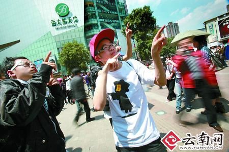 昨天(4月12日)下午1點(diǎn)40分左右,這些年輕人就開始在昆明南屏步行街廣場(chǎng)前聚集,大家三三兩兩地在一起說說笑笑。2點(diǎn)10分左右,突然傳來了一聲哨響,剛剛還在走來走去的人群突然不動(dòng)了。動(dòng)作甚至表情都僵硬不變。這一突發(fā)狀況也嚇壞了很多路過的市民,王女士表示:“當(dāng)我發(fā)現(xiàn)周圍的人都突然不動(dòng)了的時(shí)候,我一下覺得很恐怖,想這是什么陰謀?!”一些老人也非常不理解:“這些年輕人怕是都約好的了,全部在這里擺造型,一個(gè)二個(gè)表情還多嚴(yán)肅,我還以為是出了多大的事,被嚇著了。”