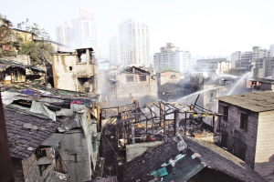 穿插在老屋間的老化電線,成了一場火災的幫兇:昨日下午3點多,渝中區十八梯至瞿家溝附近失火,火苗沿著電線蔓延,多棟民房被燒毀,逾千人被緊急疏散。