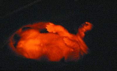 在正常光照條件下,小“魯皮”們與普通獵兔犬并沒有太大的區別;然而如果將它們放在紫外線照射下,那么它們就會發出紅色的熒光,尤其是皮膚較薄的爪子、腹部,甚至用肉眼就能觀察到紅光。